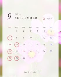 9月は連休や研修のため、通常とは異なる定休日となります。